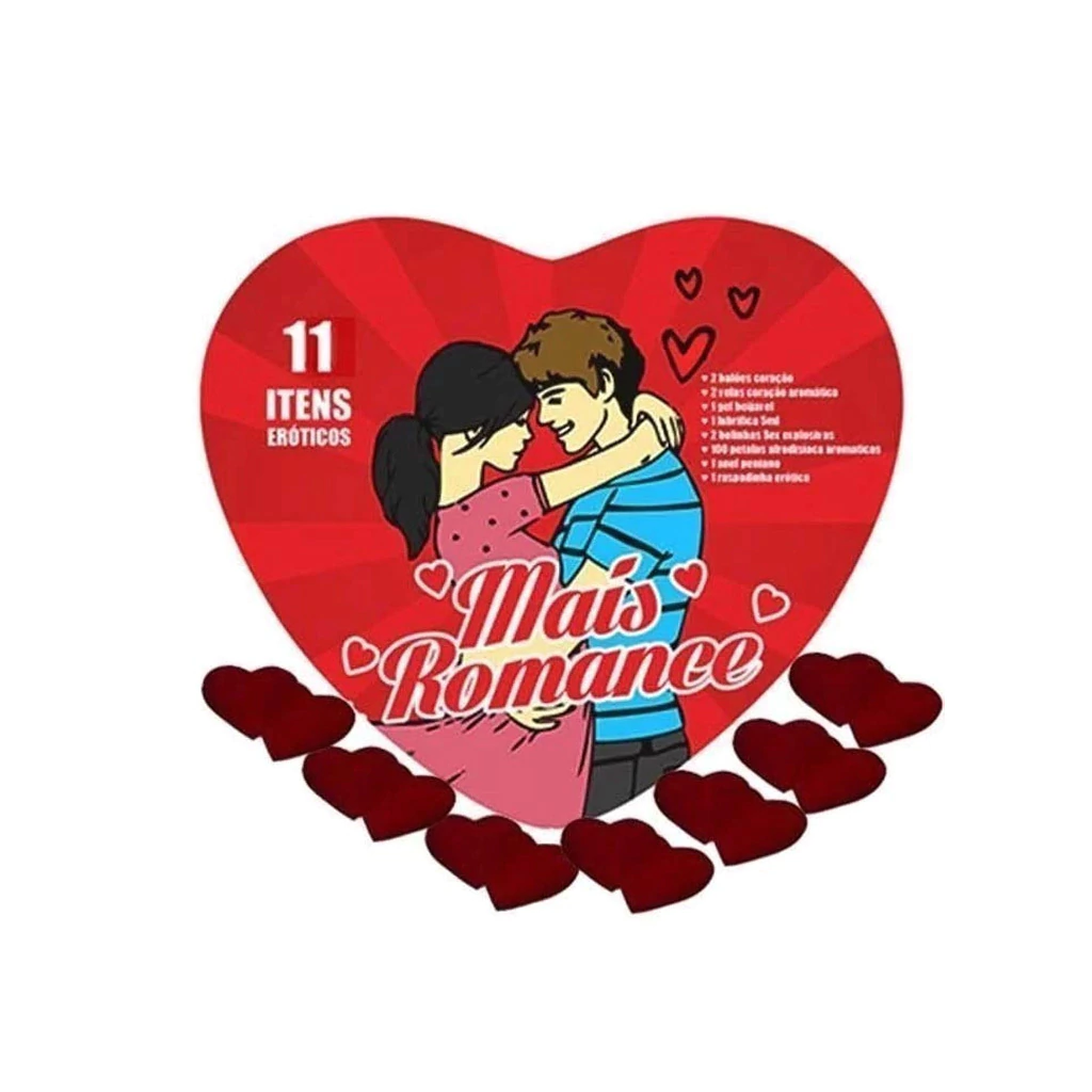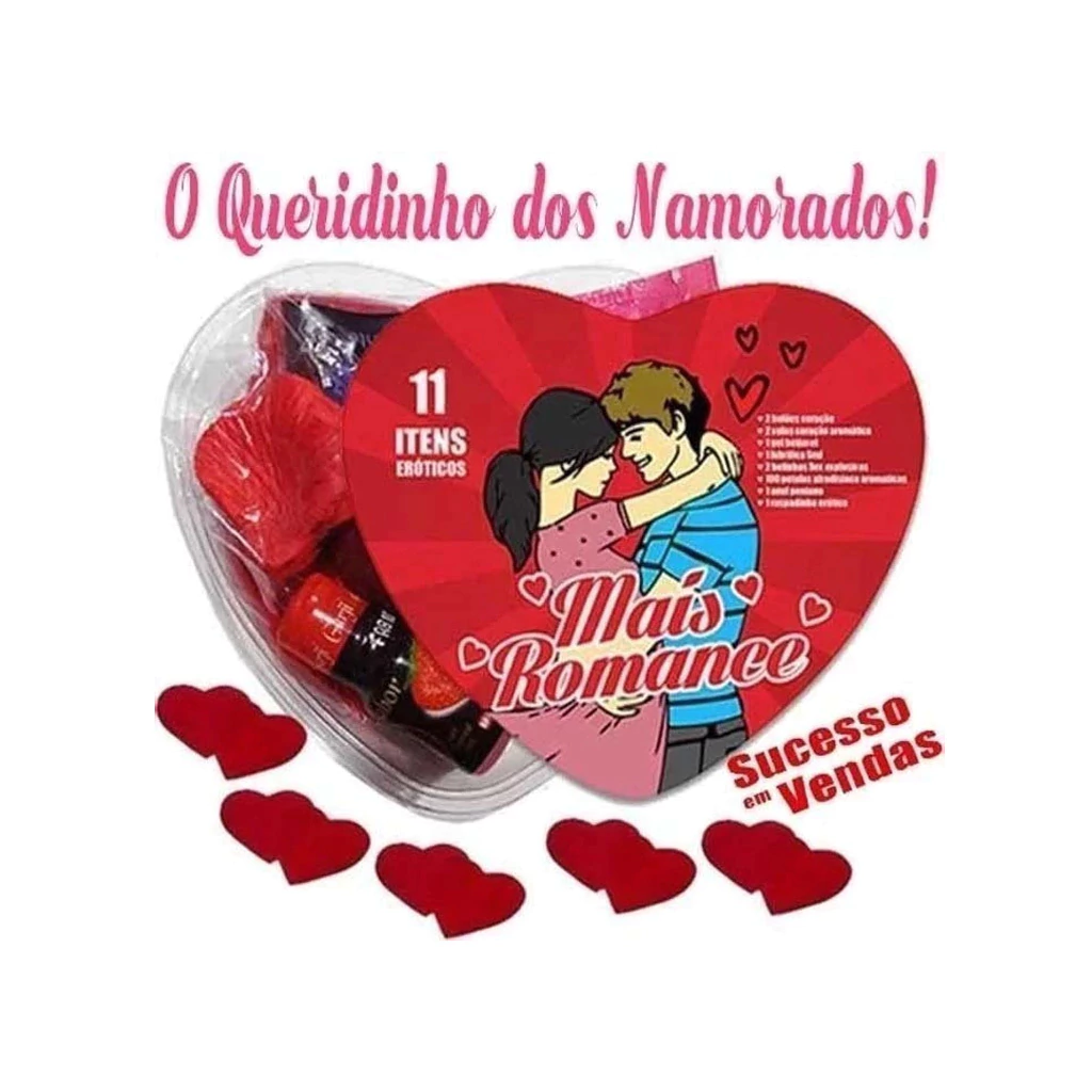 Possui 11 itens eróticos indispensáveis, vai em uma linda embalagem de coração para os casais apaixonados!